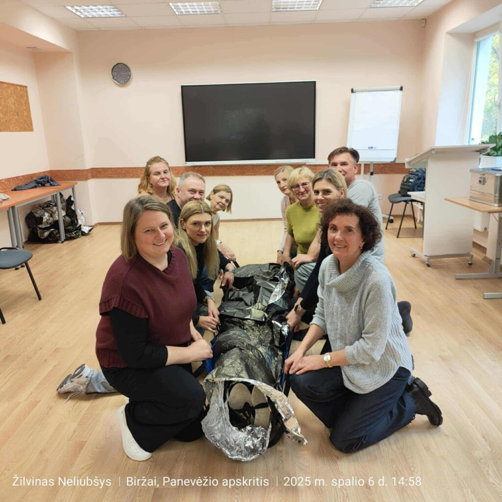 Pirmosios pagalbos mokymai taktinėje aplinkoje Biržų ŠPT bendruomenei 2025 m. spalio 6 d. Biržų švietimo pagalbos tarnybos darbuotojai dalyvavo pirmosios pagalbos mokymuose taktinėje aplinkoje. Mokymus vedė Lietuvos šaulių sąjungos Mokymų ir nekinetinių operacijų centro metodininkas Žilvinas Neliubšys, kuris pasidalijo svarbiomis teorinėmis žiniomis ir padėjo įgyti praktinių įgūdžių, reikalingų reaguojant į ekstremalias situacijas bei nelaimes. Mokymų metu išmokome: teikti pirmąją medicininę pagalbą taktinėje aplinkoje (ginkluoto išpuolio, karinės padėties ar eismo įvykio atvejais); naudoti turniketus masyvaus kraujavimo stabdymui, tamponuoti žaizdas; suteikti pagalbą patyrus galvos traumą ar lūžius; apsaugoti nukentėjusį nuo hipotermijos. Praktinių užsiėmimų metu įtvirtinome gautas žinias, išbandydami realias situacijas ir veiksmus, kurie gali padėti išgelbėti gyvybę. Tokie mokymai padeda stiprinti Tarnybos darbuotojų pasirengimą veikti įvairiose krizinėse situacijose ir didina bendrą visuomenės saugumo kultūrą. Dėkojame Lietuvos šaulių sąjungai už bendradarbiavimą, profesionalumą ir suteiktą galimybę mokytis, kaip padėti sau ir kitiems – užtikrinant veiksmingą pirmąją pagalbą kritiniais atvejais.